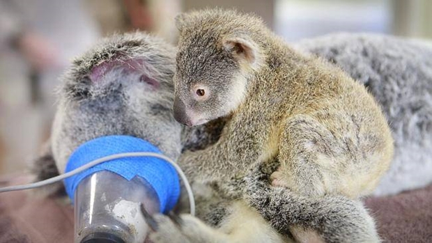 Çarpmanın etkisiyle akciğerleri sönen anne Koalanın acilen ameliyatı alınması gerekiyormuş ama bebek Koala annesini bırakmak istemiyormuş ve bebek Koala annesine sımsıkı sarılırken veterinerler operasyonu gerçekleştirmiş.