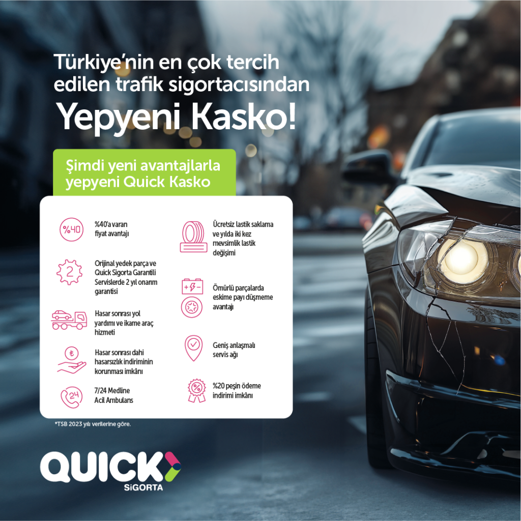 Yeni kasko ürünüyle araç sahiplerinin hayatını daha da kolaylaştıran Quick Sigorta, trafik sigortasındaki liderliğini bu kez kaskoya taşımayı hedefliyor. Bu kapsamda halihazırdaki kasko ürününü özenle tasarlayıp yenileyen Quick Sigorta, sigortalılara bir dizi avantaj vadediyor. Yenilenen bu ürünle piyasada çok daha rekabetçi hale geldiklerini söyleyen Quick Sigorta Genel Müdürü Eyüp Özsoy, “Quick Kasko ile müşterilerimize sadece uygun fiyat değil, aynı zamanda kapsamlı koruma ve üstün hizmet sunuyoruz. Bu avantajlarımız sayesinde sektördeki konumumuzu güçlendirmeyi ve müşteri memnuniyetinde lider olmayı hedefliyoruz” dedi.
