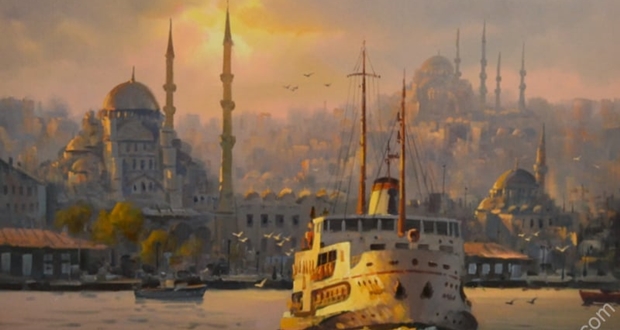 Bülent Kılıç resimleri; bir İstanbul silueti, iskelede insanlar yeşil, kırmızı, gri, turuncu renkli elbiseleriyle bir telaş, bir koşuşturma, onları izleyen martılar yakınlarında ve uzaktan merhaba diyorlar. Vapur iskeleye yanaşıyor heyecan daha da artıyor, ritmi yükseliyor hayatın. Renk, ritim ve kurgu tamamlıyor kompozisyonu. Fondaki vapurun direkleri koyu sarı ve yer yer lekeleri var, sisli bir form tam önünde, ön yüzünde ışıklar krem rengi vapurdan beyaz olarak dönüyor. Işık ve beyaz. Daha arka tarafta İstanbul silueti, cami minareleri açık turkuaz renklerinde. Deforme edilmiş kahveler, kırmızılar, turuncular… Sağında büyük bir espas ve deniz, turkuaz ve tonları üzerinde yer yer lekelerle bir İstanbul resminin doyumsuz tadını alıyorsunuz. Bir İstanbul şiirine ortak oluyorsunuz Bülent Kılıç resimleriyle. An geliyor hüzün, bazen tatlı bir tebessüm ve anılarla geriye dönüşler, hayaller ve bugün bu tablonun gönlünden geçenler.