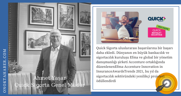 Quick Sigorta Genel Müdürü Ahmet Yaşar, kendilerine bu başarıyı getiren çalışma sistemleri için “Quick Sigorta olarak çok kısa sürede globalbir iş olan sigortacılıkta gelecek trendlerine yön veren çok sayıda yaratıcı iş modelleri ortaya koyduk. Inovatif olmayı önemsiyoruz, bu kapsamdasadece ürünleri, branş segmentlerini değil yanı sıra dağıtım kanallarını da çeşitlendirmek ve birbirine entegre etmek bizim için önemli bir role sahip. Böylesi değerli bir raporda yer almak, attığımız adımların ve yenilikçi bakış açımızın da bir karşılığı olduğunu gösteriyor. Şimdiye kadar olduğu gibi bundan sonra da finansal sigortalar alanı başta olmak üzere sektörde öncülük etmeye devam edeceğiz. 2022’de çok farklı ürünler ve iş planları düzenleyerek bu alanı da sektörel olarak geliştireceğiz. Yenilikçi olmak bizim DNA’mızda var, her departmanımızda ve her ürünümüzde bunu temel alıyoruz. Çok sayıda ürünümüzü pandemi itibarıyla online olarak sunmaya başladık. Bu özellik, erişim ve hız faktörüne olumlu etki ediyor; müşterilerimiz işlemlerini kolayca gerçekleştiriyor” dedi.