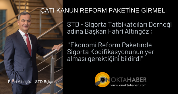 Sigorta Tatbikatçıları Derneği adına bir açıklama yapan Yönetim Kurulu Başkanı Fahri Altıngöz “Sigortacılık sektörünün gelişimi için sigorta kodifikasyonuna ihtiyaç olduğunu, tek bir çatı kanun yapılanmasının ekonomi reform paketinin amacına da uygun olacağını, sektörün büyümesinin kamunun yükünü azaltıcı bir misyonun yanısıra tasarruf oranımıza da olumlu katkı sağlayacağına”işaret etti ve sözlerine şöyle devam etti.