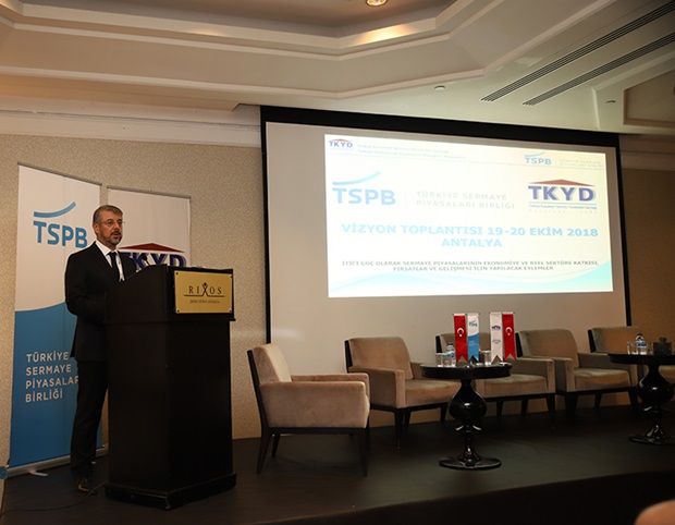 TSPB ve TKYD Vizyon Toplantısı, TSB Başkanı Sayın Can Akın Çağlar’ın açılış konuşmacıları arasında yer aldığı “İTİCİ GÜÇ OLARAK SERMAYE PİYASALARININ EKONOMİYE VE REEL SEKTÖRE KATKISI, FIRSATLAR VE GELİŞMESİ İÇİN YAPILACAK EYLEMLER” konulu etkinlikle, 19 Ekim 2018 tarihinde Antalya ‘da Rixos Downtown otelde gerçekleştirildi.