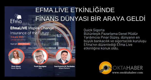 Quick Sigorta Bütünleşik Pazarlama Genel Müdür Yardımcısı Pınar Güzey, dünyanın en büyük bankacılık ve sigortacılık kuruluşu Efma’nın düzenlediği Efma Live etkinliğine konuk oldu.